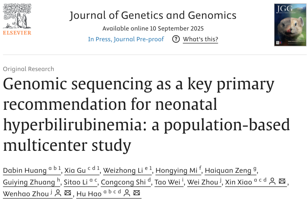 2025年9月10日,中山大学附属第六医院郝虎教授、肖昕教授联合广州医科大学附属广州市妇女儿童医疗中心周文浩教授等多中心团队在《Journal of Genetics and Genomics》在线发表题为“Genomic sequencing as a key primary recommendation for neonatal hyperbilirubinemia: a population-based multicenter study”的重要研究成果。